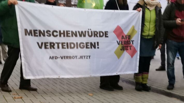 In den Redebeiträgen wurde auf die Gefahr für die Demokratie eingegangen, die von der AfD ausgeht. Dass diese Partei trotz aller Erkenntnisse über ihre antidemokratischen Ziele, geschützt von der Polizei in den demokratischen Institutionen und öffentlichen Räumlichkeiten der Stadt agitieren durfte, ist ein Skandal.